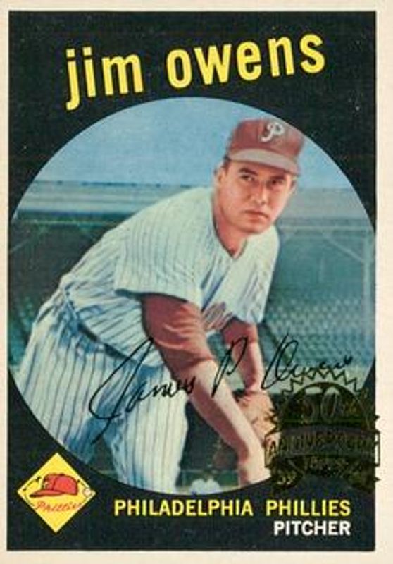 Jim Owens' Baseball cards are available in at least 19 sets. Jim Owens' biggest 7-day price movers are 2008 Topps Heritage #503 50th Anniversary Buybacks, 2009 Topps Heritage #185 50th Anniversary Buybacks, and 2010 Topps Heritage #341 50th Anniversary Buybacks.