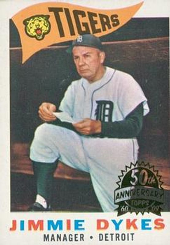 Jimmie Dykes' Baseball cards are available in at least 11 sets. Jimmie Dykes' biggest 7-day price movers are 2009 Topps Heritage #214 50th Anniversary Buybacks, 2010 Topps Heritage #222 50th Anniversary Buybacks, and 1933 Goudey #6b Base.