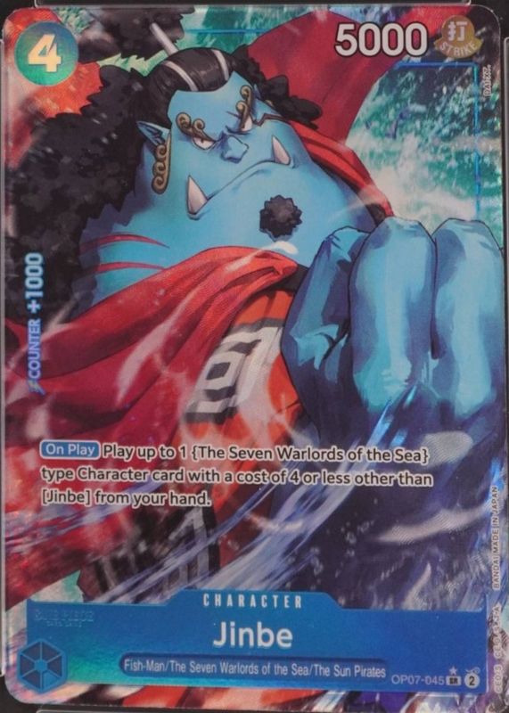 Jinbe's One Piece cards are available in at least 4 sets. Jinbe's biggest 7-day price movers are 2024 500 Years in the Future #OP07-027 Base, 2024 500 Years in the Future #OP07-045 Super Rare, and 2024 500 Years in the Future #OP07-102 Base.