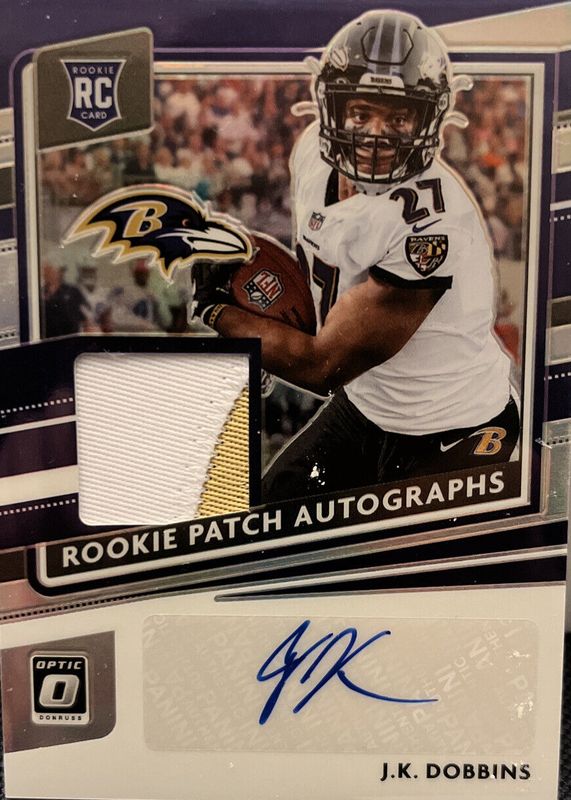 JK Dobbins' Football cards are available in at least 39 sets. JK Dobbins' biggest 7-day price movers are 2020 Optic #RPA-JD Rookie Patch Auto /25, 2020 Mosaic #223 Genesis /(SSP), and 2019 Select #310 XRC Prizm.