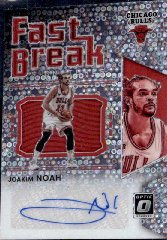 Joakim Noah's Basketball cards are available in at least 166 sets. Joakim Noah's biggest 7-day price movers are 2021 Optic #FB-JKN Fast Break Signatures, 2021 Optic #OG-JKN Opti Graphs - Gold Vinyl /1, and 2021 Optic #FB-JKN Fast Break Signatures - Gold /10.