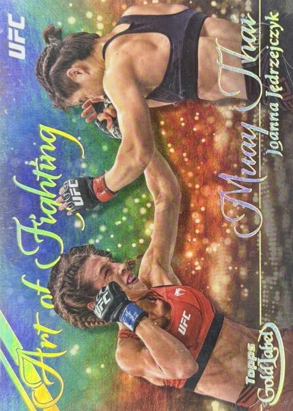 The biggest 30-day change Joanna Jedrzejczyk cards are 2024 Topps Gold Label UFC #AOF-8 Art of Fighting /(SSP), 2024 Topps Chrome UFC #FFT-24 1954 Topps - Gold Refractor /50, and 2024 Topps Chrome UFC #CVA-JJE Veteran Autographs - Gold Refractor /50.