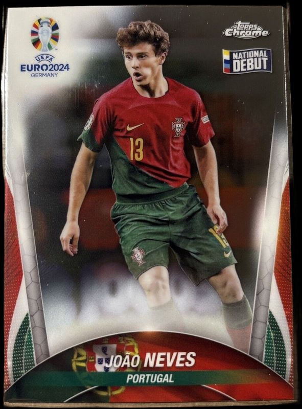 Joao Neves' Soccer cards are available in at least 20 sets. Joao Neves' biggest 7-day price movers are 2023 Topps Chrome UEFA Euro #46 Base, 2023 Topps Chrome UEFA Euro #46 XI Refractor /11, and 2023 Topps Chrome UEFA Euro #46 Blue Lava Refractor /75.