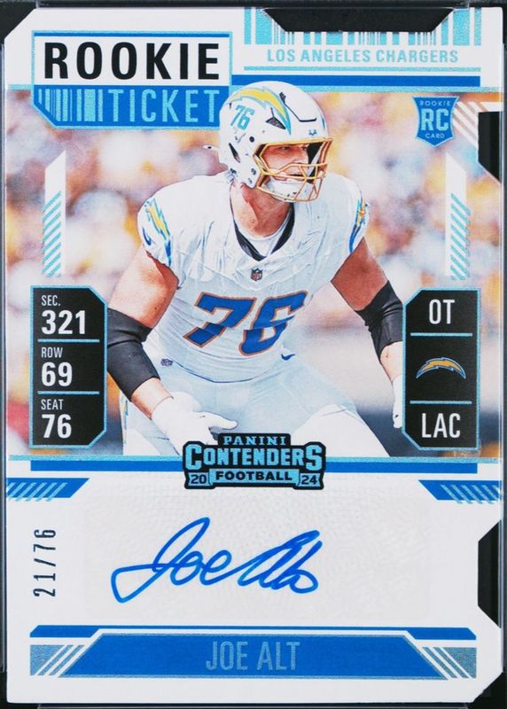 Joe Alt's Football cards are available in at least 20 sets. Joe Alt's biggest 7-day price movers are 2024 Contenders #166 Rookie Ticket Auto - Ticket Stub (/76), 2024 Prizm #353 Black Finite /1, and 2024 Mosaic #305 Blue Sparkle /96.