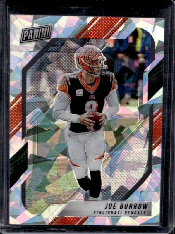 Joe Burrow's Multi-Sport cards are available in at least 35 sets. Joe Burrow's biggest 7-day price movers are 2022 Panini National Convention VIP Gold Packs #19 Cracked Ice /99, 2022 Panini National Convention VIP Gold Packs #19 Blue Camo /15, and 2022 Panini National Convention VIP Gold Packs #19 Black Memorabilia /5.