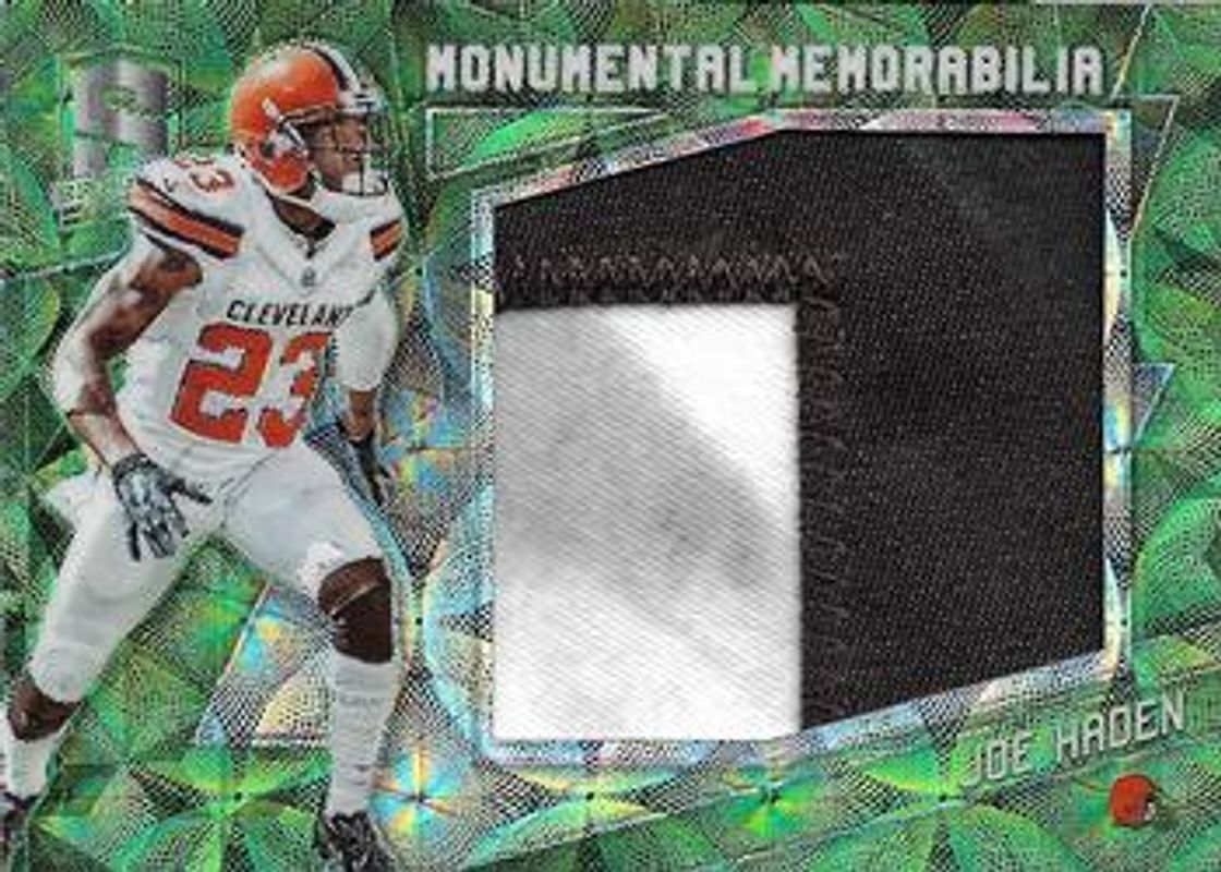 Joe Haden's Football cards are available in at least 65 sets. Joe Haden's biggest 7-day price movers are 2016 Spectra #16 Monumental Memorabilia - Neon Green /25, 2016 Spectra #14 Immense Materials Gold Laundry Tags /1, and 2016 Spectra #16 Monumental Memorabilia - Neon Blue /99.