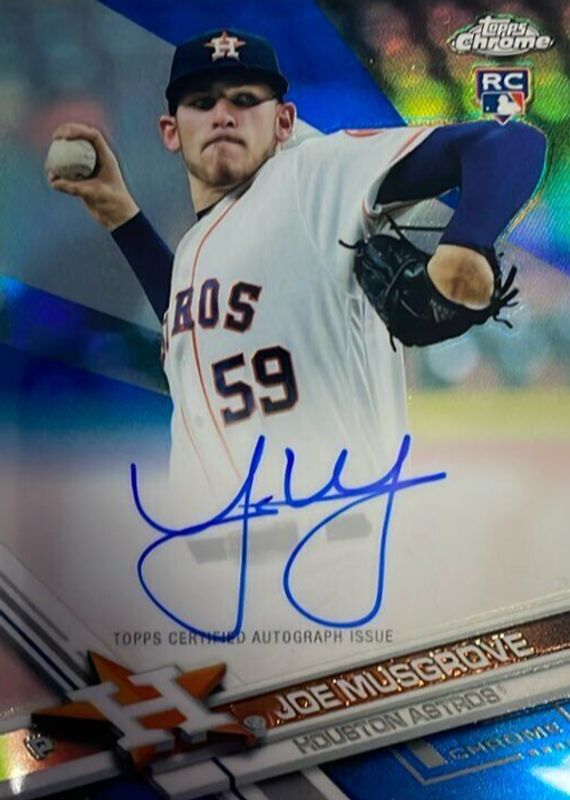 Joe Musgrove's Baseball cards are available in at least 30 sets. Joe Musgrove's biggest 7-day price movers are 2017 Topps Chrome #RA-JM Rookie Auto - Blue Refractor /150, 2016 Bowman Chrome #CPA-JMU Prospect Auto, and 2017 Topps Heritage #ROA-JM Real One Autographs.