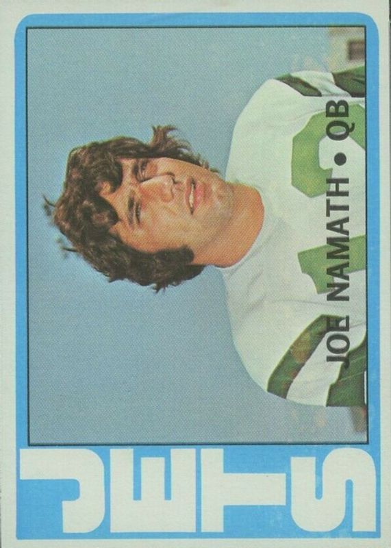 Joe Namath's Football cards are available in at least 236 sets. Joe Namath's biggest 7-day price movers are 2025 Optic #6 Downtown Legends /(SSP), 2025 Optic #25 Sunday Kings /(SSP), and 1972 Topps #100 Base.