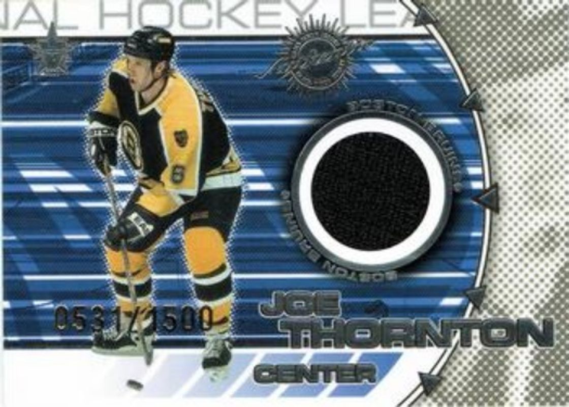 Joe Thornton / Sergei Samsonov's Hockey cards are available in at least 8 sets. Joe Thornton / Sergei Samsonov's biggest 7-day price movers are 2000 Pacific Vanguard #1 Dual Game Worn Jerseys /1500, 2000 Pacific Vanguard #1 Dual Game Worn Patches /300, and 2003 Pacific Luxury Suite #26c Base /299.