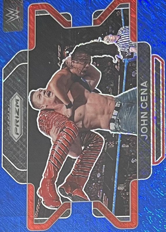 John Cena's Wrestling cards are available in at least 34 sets. John Cena's biggest 7-day price movers are 2022 Prizm WWE #45 FOTL Blue Shimmer /10, 2015 Topps Chrome WWE #38 Pulsar Refractor /75, and 2024 Prizm WWE #156 Red Pulsar /399.