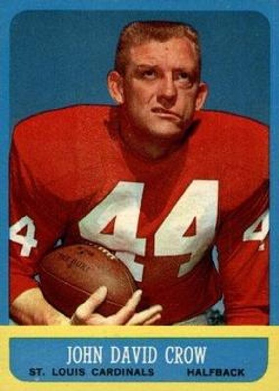 John David Crow's Football cards are available in at least 6 sets. John David Crow's biggest 7-day price movers are 1963 Topps #147 Base, 1962 Topps #140 Base, and 1962 Topps #6 Bucks.
