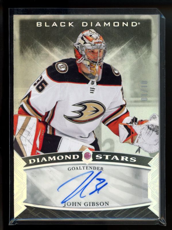 John Gibson's Hockey cards are available in at least 70 sets. John Gibson's biggest 7-day price movers are 2017 O-Pee-Chee #62 Retro Blank Back, 2017 O-Pee-Chee #62 Black Rainbow Foil /100, and 2013 National Treasures #RB-JGI Rookie Jumbo Jerseys Booklet Autographs /99.