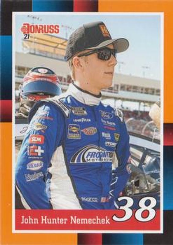 John Hunter Nemechek's Racing cards are available in at least 29 sets. John Hunter Nemechek's biggest 7-day price movers are 2021 Donruss NASCAR #139 Orange, 2021 Donruss NASCAR #64 Orange, and 2021 Donruss NASCAR #64 Printing Plates Cyan /1.