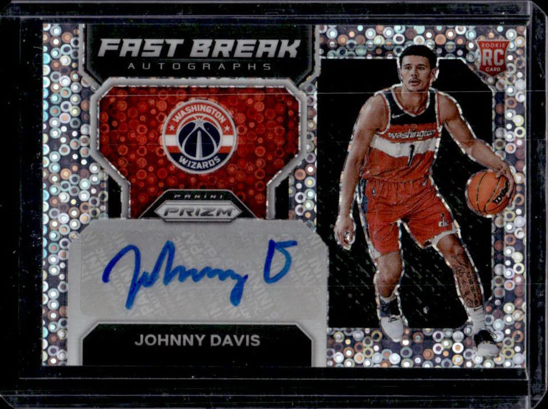 Johnny Davis' Basketball cards are available in at least 51 sets. Johnny Davis' biggest 7-day price movers are 2022 Prizm #FBR-JDW Fast Break Rookie Autographs, 2022 Prizm #FBR-JDW Fast Break Rookie Autographs - Black /1, and 2022 Prizm #SS-JV Sensational Signatures.