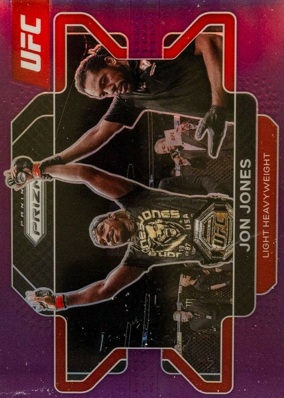 Jon Jones' MMA cards are available in at least 32 sets. Jon Jones' biggest 7-day price movers are 2022 Prizm UFC #4 Purple /149, 2024 Topps Gold Label UFC #GSP-1 Gold Splatter /(SSP), and 2024 Topps Chrome UFC #TFT-23 Tale of the Tape - Black Refractor /10.