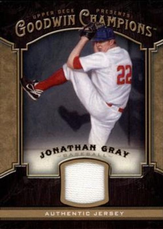 Jonathan Gray's Multi-Sport cards are available in at least 3 sets. Jonathan Gray's biggest 7-day price movers are 2014 Upper Deck Goodwin Champions #M-GR Memorabilia, 2014 Upper Deck Goodwin Champions #M-GR Memorabilia Premium /50, and 2014 Upper Deck Goodwin Champions #191 Base.