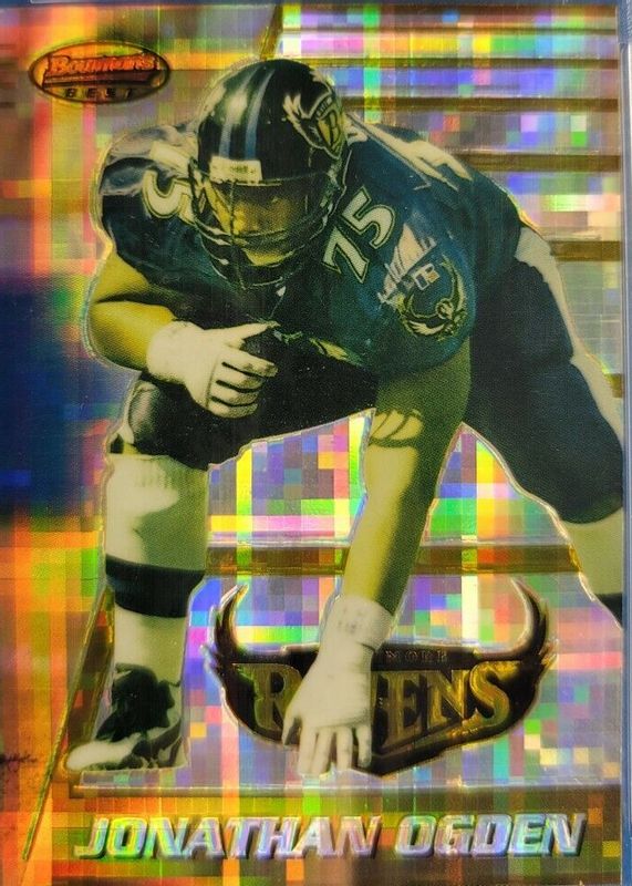 Jonathan Ogden's Football cards are available in at least 49 sets. Jonathan Ogden's biggest 7-day price movers are 1996 Bowman's Best #148 Atomic Refractor, 2005 Topps Heritage #123 Base, and 1996 Pacific Crown Royale #CR-84 Silver.