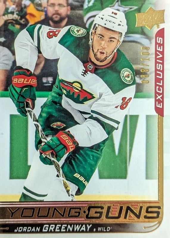 Jordan Greenway's Hockey cards are available in at least 33 sets. Jordan Greenway's biggest 7-day price movers are 2018 SP Authentic #155 Future Watch Auto /999, 2022 Upper Deck Allure #19 Blue Line /35, and 2022 Upper Deck Allure #19 Printing Plates Cyan /1.