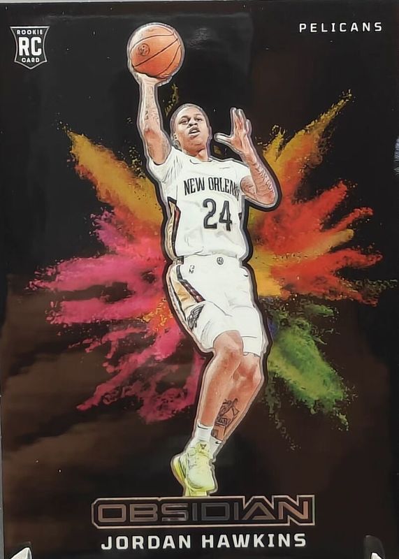 The biggest 30-day change Jordan Hawkins cards are 2023 Obsidian #11 Black Color Blast /(SSP), 2023 Crown Royale #17 Kaboom! /(SSP), and 2023 Hoops Premium Stock #125 Gold /10.