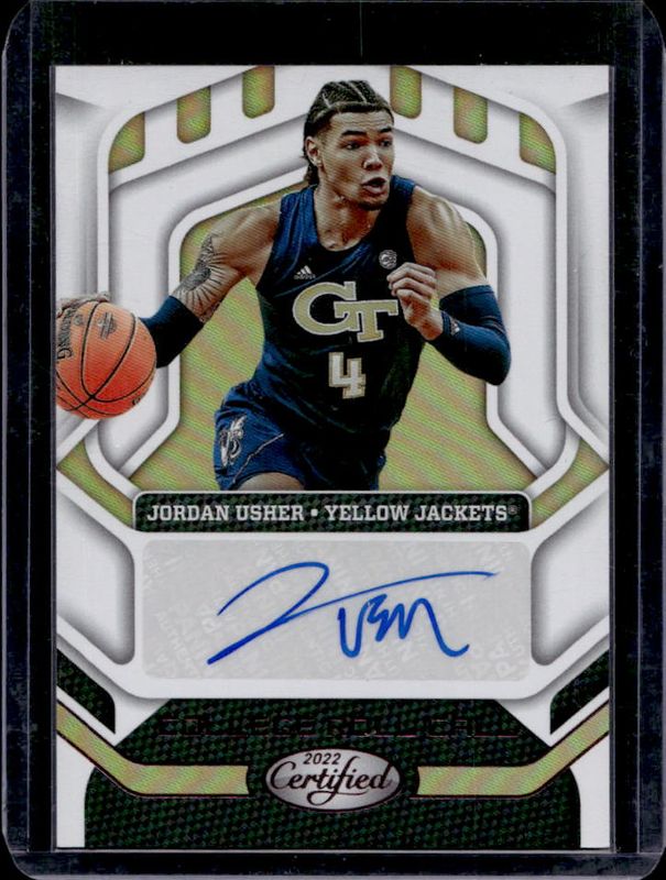 Jordan Usher's Basketball cards are available in at least 4 sets. Jordan Usher's biggest 7-day price movers are 2022 Chronicles Draft Picks #CRC-USH College Roll Call Autographs - Pink, 2022 Chronicles Draft Picks #CRC-USH College Roll Call Autographs - Blue Ice /22, and 2022 Chronicles Draft Picks #CRC-USH College Roll Call Autographs - Bronze.