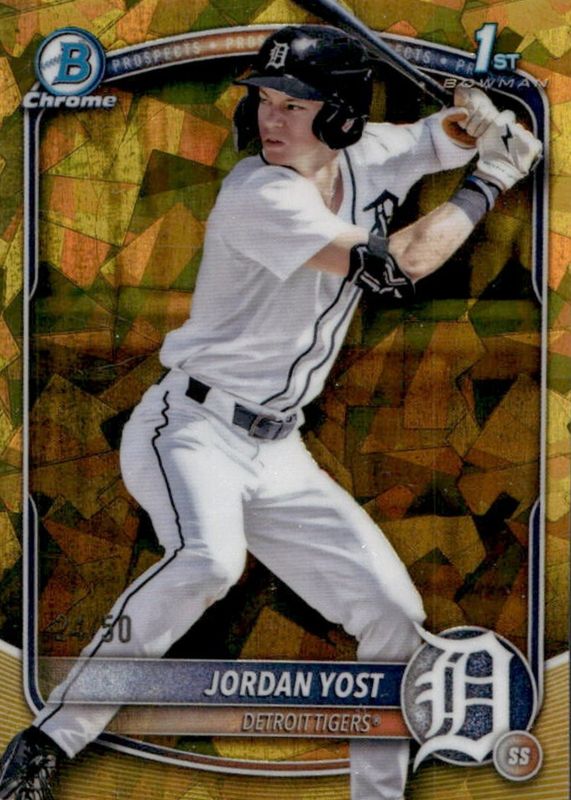 Jordan Yost's Baseball cards are available in at least 3 sets. Jordan Yost's biggest 7-day price movers are 2025 Bowman Draft Sapphire Edition #BDC-162 Chrome (1st), 2025 Bowman Draft #BDC-162 Chrome - Green Grass Refractor /99 (1st), and 2025 Bowman Draft Sapphire Edition #BDC-162 Chrome - Gold /50 (1st).