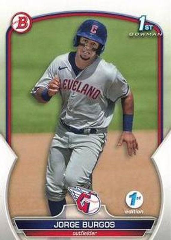 The biggest 30-day change Jorge Burgos cards are 2023 Bowman 1st Edition #BPPF-98 Base, 2023 Bowman 1st Edition #BPPF-98 Orange Foil /25, and 2023 Bowman 1st Edition #BPPF-98 Blue Foil /150.