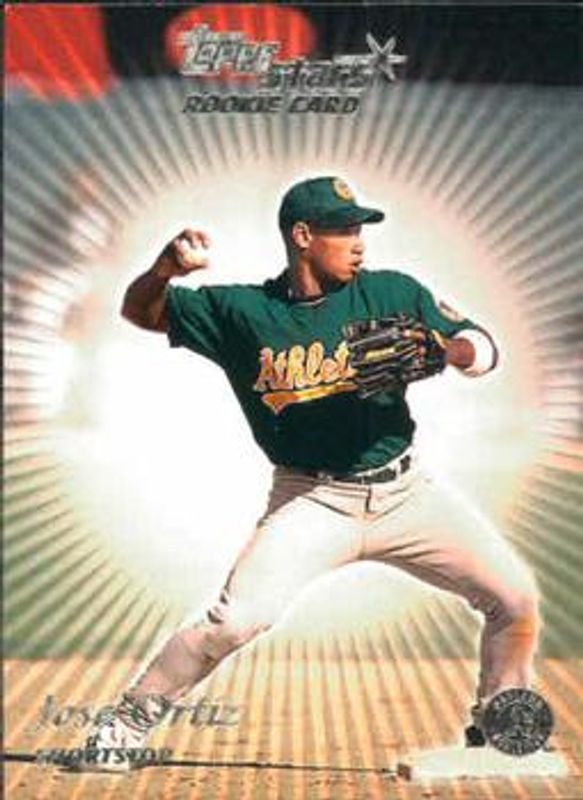 Jose Ortiz's Baseball cards are available in at least 9 sets. Jose Ortiz's biggest 7-day price movers are 2000 Topps Stars #140 Base, 2000 Topps Stars #140 Metallic Blue /299, and 2001 Topps eTopps #50 Base.