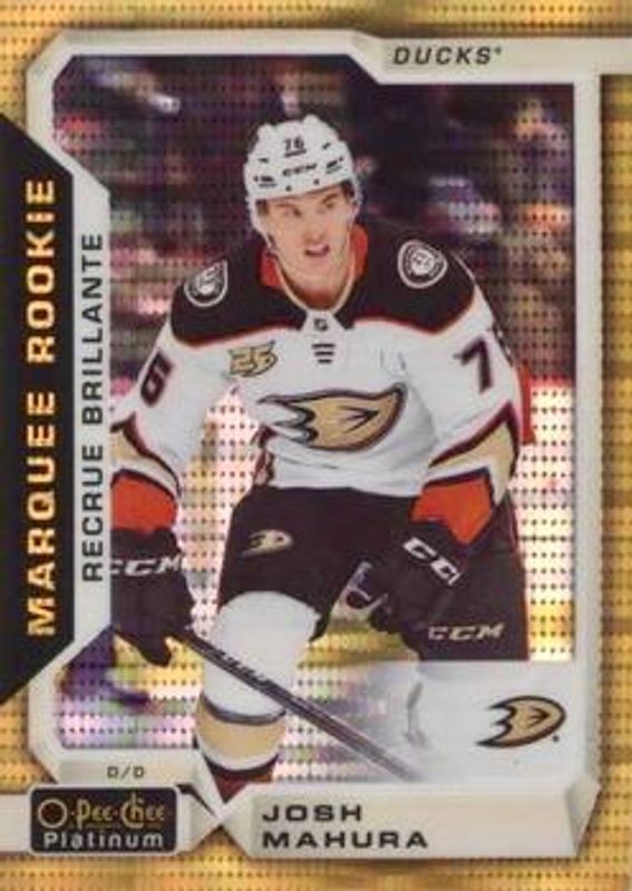 The biggest 30-day change Josh Mahura cards are 2018 O-Pee-Chee Platinum #189 Seismic Gold /50, 2016 Upper Deck Team Canada Juniors #51 Base, and 2016 Upper Deck Team Canada Juniors #51 Printing Plates Cyan /1.