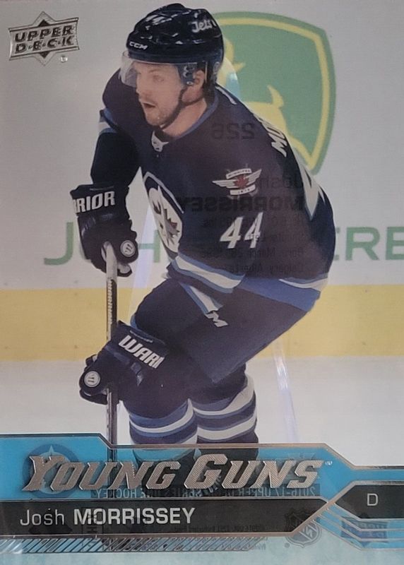 The biggest 30-day change Josh Morrissey cards are 2016 Upper Deck #226 Young Guns Base, 2016 Upper Deck #226 Young Guns - Clear Cut, and 2016 Upper Deck Trilogy #SP-JM Signatures Pucks Team Logo /17.