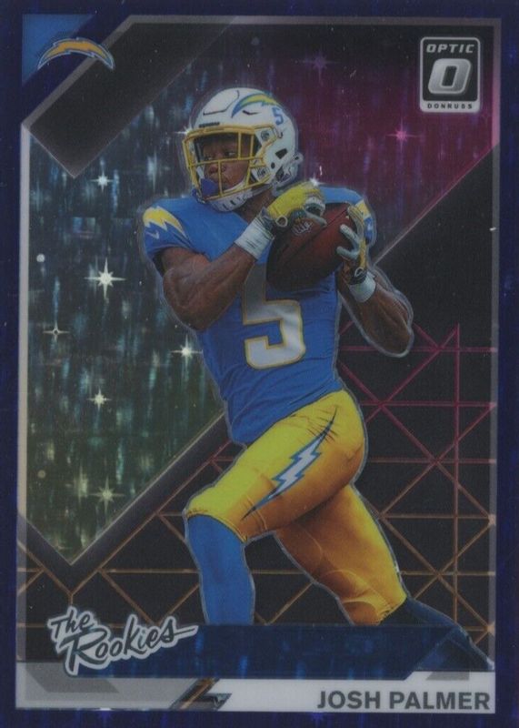 Josh Palmer's Football cards are available in at least 11 sets. Josh Palmer's biggest 7-day price movers are 2021 Optic #TR-18 The Rookies - Purple Stars /25, 2021 One #136 Premium Rookie Patch Autographs - Bronze /25, and 2021 Prizm #359 Rookie Autographs - Pink.