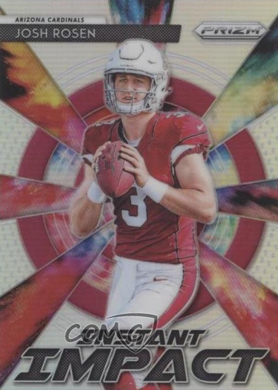 Josh Rosen's Football cards are available in at least 55 sets. Josh Rosen's biggest 7-day price movers are 2018 Prizm #II-6 Instant Impact, 2018 Select #62 Concourse FOTL Neon Orange Pulsar /9, and 2018 Select #206 Field Level FOTL Neon Orange Pulsar /9.