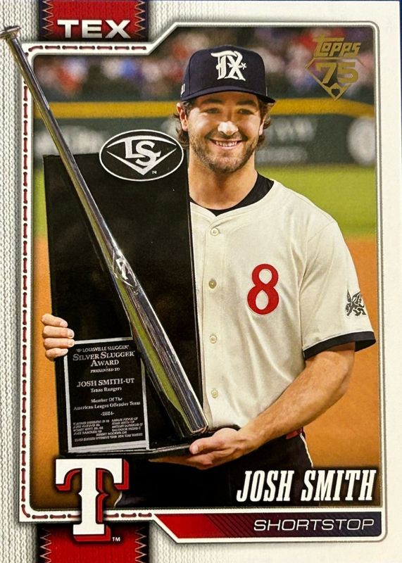 Josh Smith's Baseball cards are available in at least 13 sets. Josh Smith's biggest 7-day price movers are 2026 Topps #169 Golden Mirror Variation /(SSP), 2019 Bowman Draft #CDA-JS Chrome DP Auto (1st), and 2019 Bowman Draft #CDA-JS Chrome DP Auto - Gold Wave Refractor /50 (1st).
