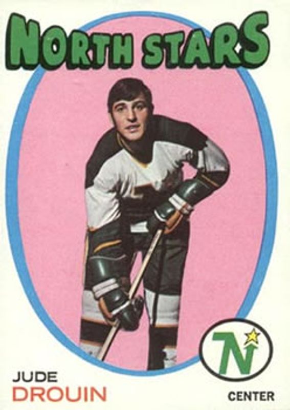 Jude Drouin's Hockey cards are available in at least 14 sets. Jude Drouin's biggest 7-day price movers are 1971 O-Pee-Chee #68 Base, 1971 O-Pee-Chee #21 Booklet - French, and 1971 O-Pee-Chee #21 Booklet.