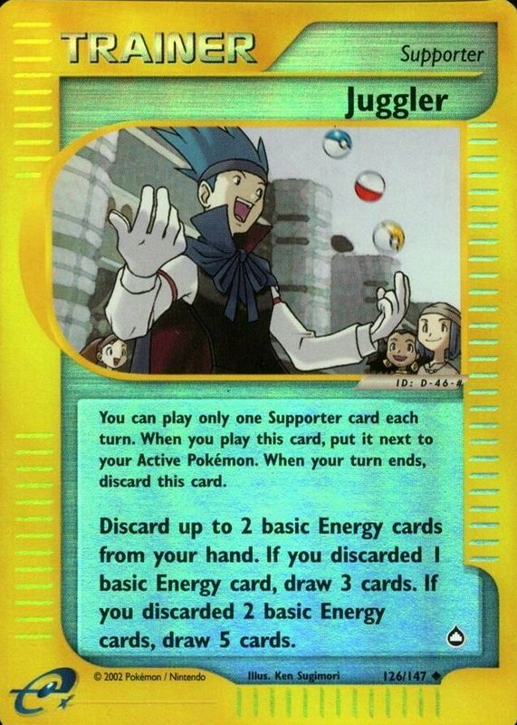 Juggler's Pokemon cards are available in at least 2 sets. Juggler's biggest 7-day price movers are 2003 Aquapolis #126/147 Reverse Holo, 2003 Aquapolis #126/147 Base, and 2002 Japanese Wind from the Sea #78/87 1st Edition.
