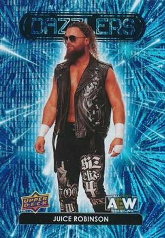 Juice Robinson's Wrestling cards are available in at least 6 sets. Juice Robinson's biggest 7-day price movers are 2023 Upper Deck AEW #DZ-45 Dazzlers Blue, 2023 Upper Deck AEW #DZ-45 Dazzlers Orange, and 2023 Upper Deck AEW #C55 UD Canvas Black.