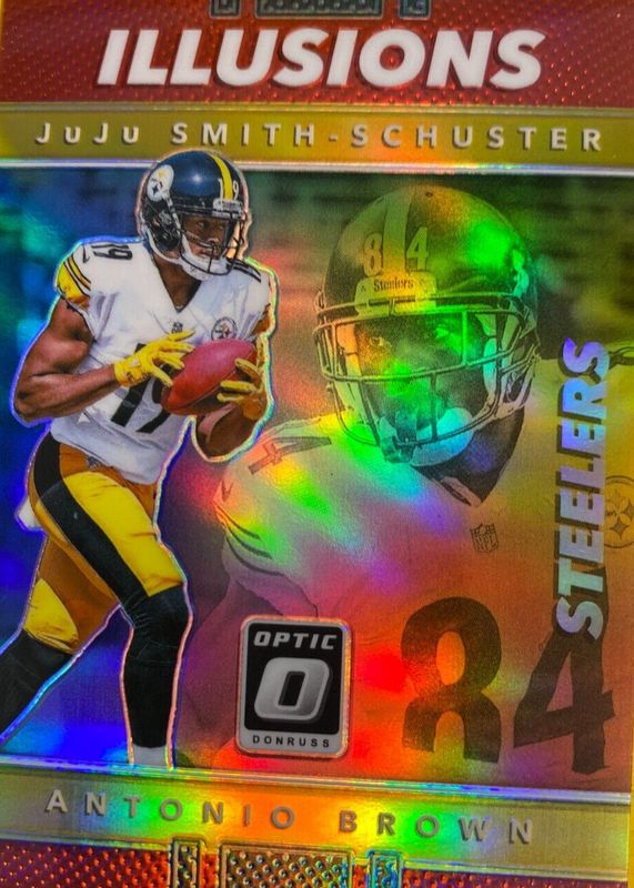 JuJu Smith-Schuster's Football cards are available in at least 73 sets. JuJu Smith-Schuster's biggest 7-day price movers are 2017 Optic #17 Illusions - Red /99, 2017 Contenders #327 Rookie Ticket Auto - Championship Ticket (/10), and 2017 Phoenix #125 Base.