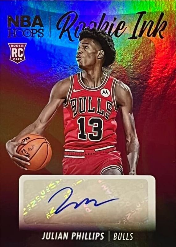 The biggest 30-day change Julian Phillips cards are 2023 Hoops #RI-PHL Rookie Ink, 2023 Hoops #RI-PHL Rookie Ink - Hyper Gold, and 2023 Hoops #RI-PHL Rookie Ink - Green.