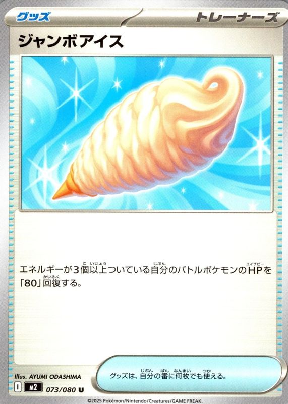 Jumbo Ice Cream's Pokemon cards are available in at least 3 sets. Jumbo Ice Cream's biggest 7-day price movers are 2026 Japanese Mega: Ninja Spinner #105/83 Super Rare (Full Art), 2025 Japanese Mega: Inferno X #73/80 Base, and 2025 Mega Evolution: Phantasmal Flames #91/94 Base.