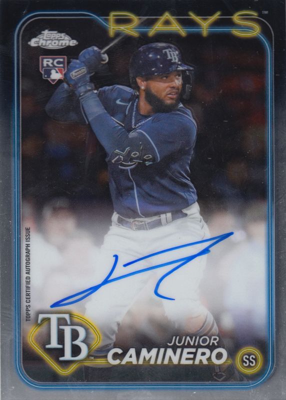 Junior Caminero's Baseball cards are available in at least 72 sets. Junior Caminero's biggest 7-day price movers are 2024 Topps Stadium Club #223 Red Foil, 2024 Topps Chrome Update #USC193 Rookie Debut - Refractor, and 2024 Topps Update #BG-12 Topps Black Gold.