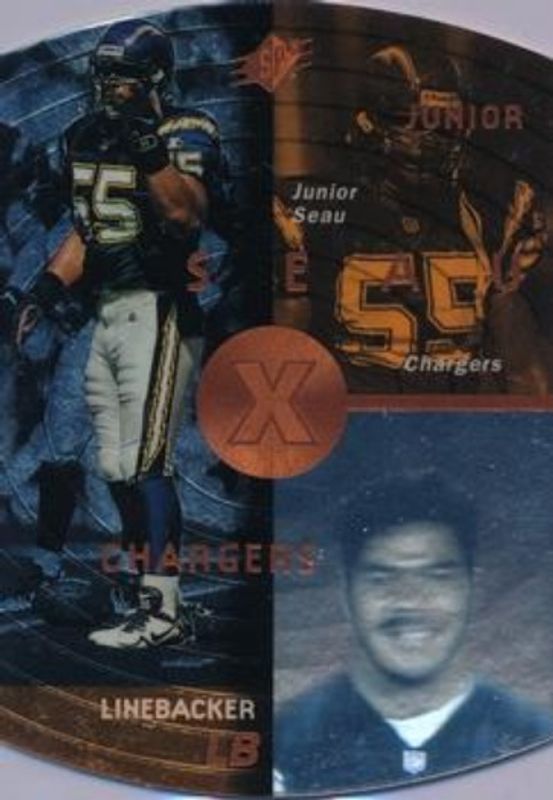 Junior Seau's Football cards are available in at least 110 sets. Junior Seau's biggest 7-day price movers are 1990 Topps #381 Base, 1998 SPx #38 Bronze, and 1998 SPx #38 Base.