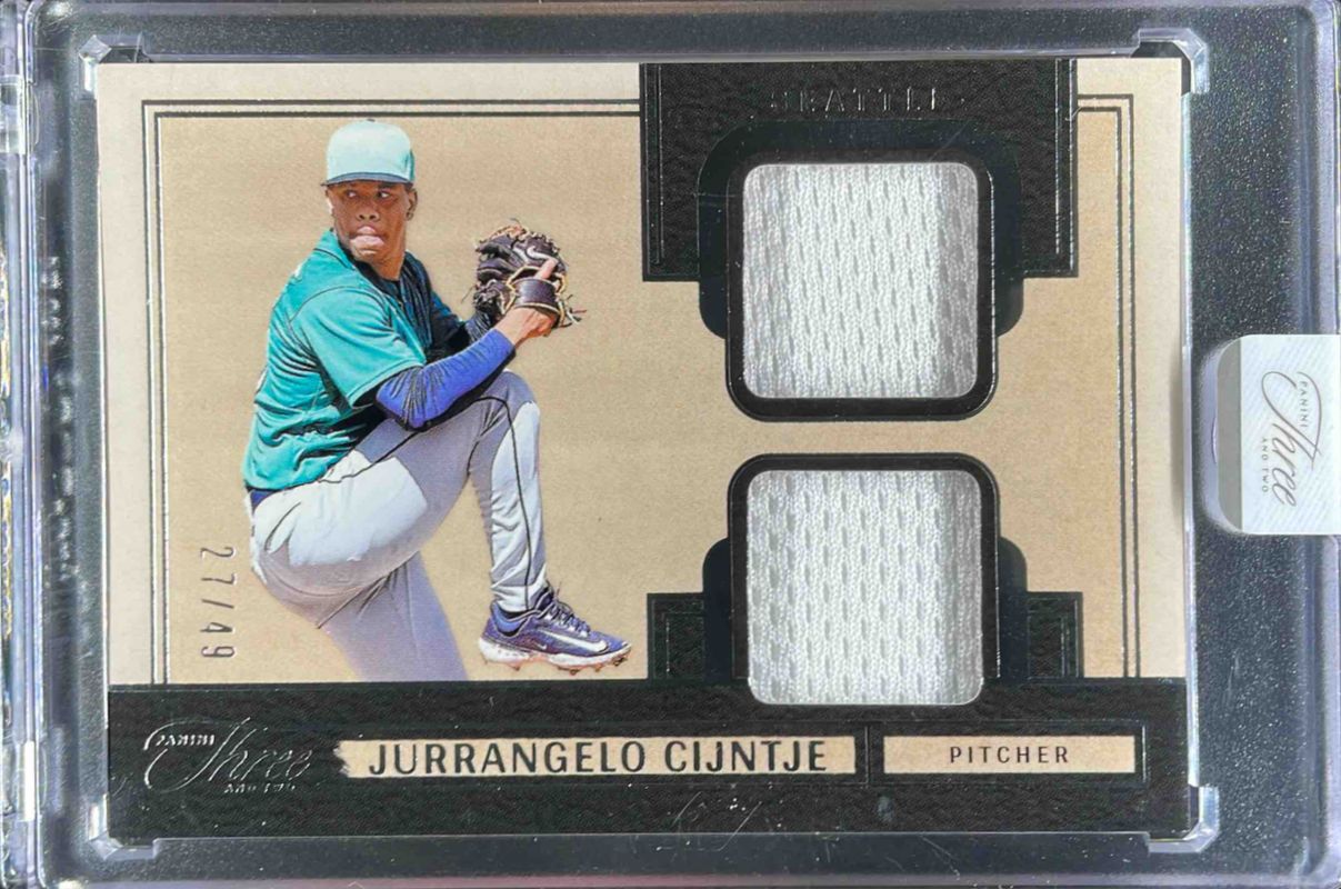 Jurrangelo Cijntje's Baseball cards are available in at least 10 sets. Jurrangelo Cijntje's biggest 7-day price movers are 2025 Panini Three and Two #10 Prospect Dual Jerseys /49, 2025 Panini Three and Two #65 Black /8, and 2025 Panini Three and Two #65 Navy Blue /25.