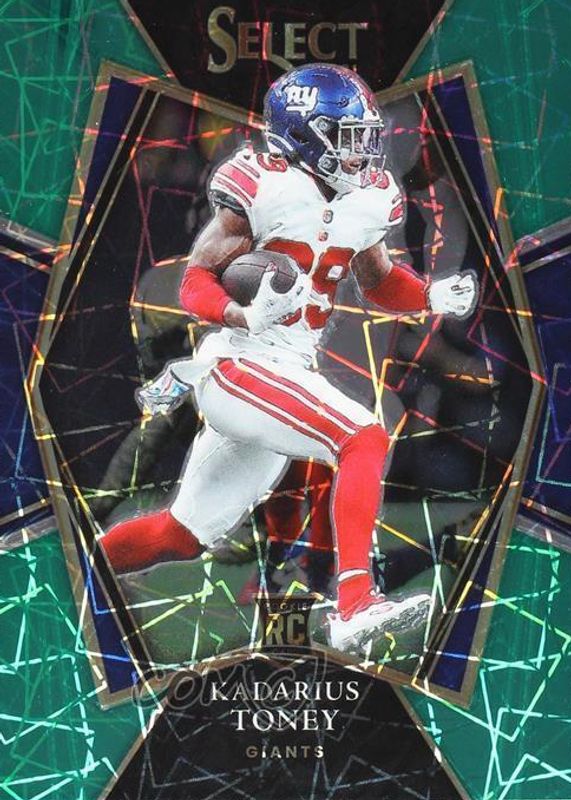 Kadarius Toney's Football cards are available in at least 22 sets. Kadarius Toney's biggest 7-day price movers are 2021 Select #152 Premier Level Green /5, 2021 Select #PHE-24 Phenomenon - Green /5, and 2021 Select #152 Premier Level Tri-Color /199.