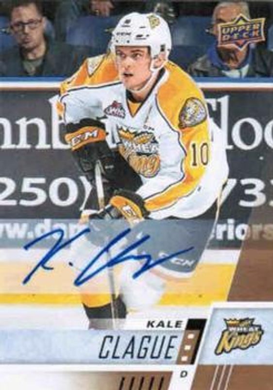 Kale Clague's Hockey cards are available in at least 16 sets. Kale Clague's biggest 7-day price movers are 2017 Upper Deck CHL #7 Autographs, 2017 Upper Deck CHL #7 Printing Plates Cyan /1, and 2017 Upper Deck CHL #7 Printing Plates Black /1.