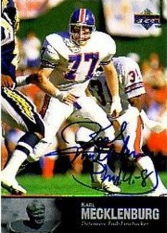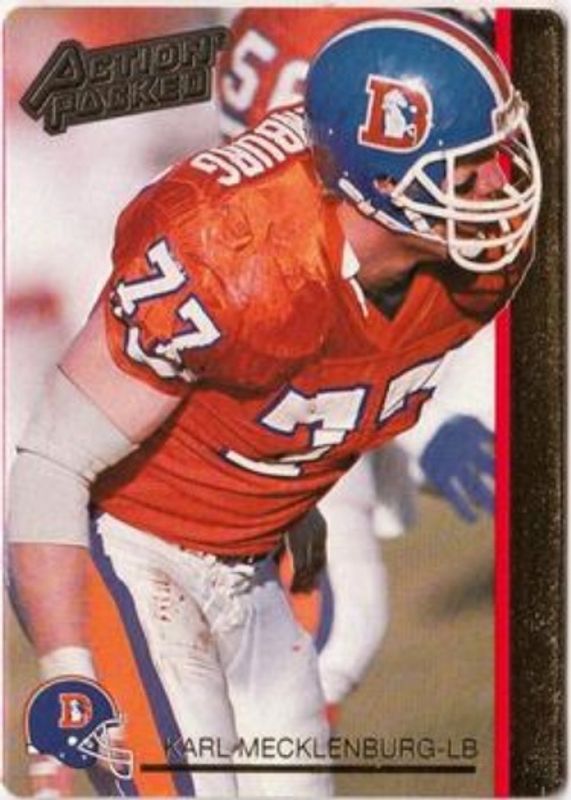 Karl Mecklenburg's Football cards are available in at least 13 sets. Karl Mecklenburg's biggest 7-day price movers are 1986 Topps #119 Base, 1992 Action Packed #66 Base, and 1992 Action Packed #66 Mint /500.
