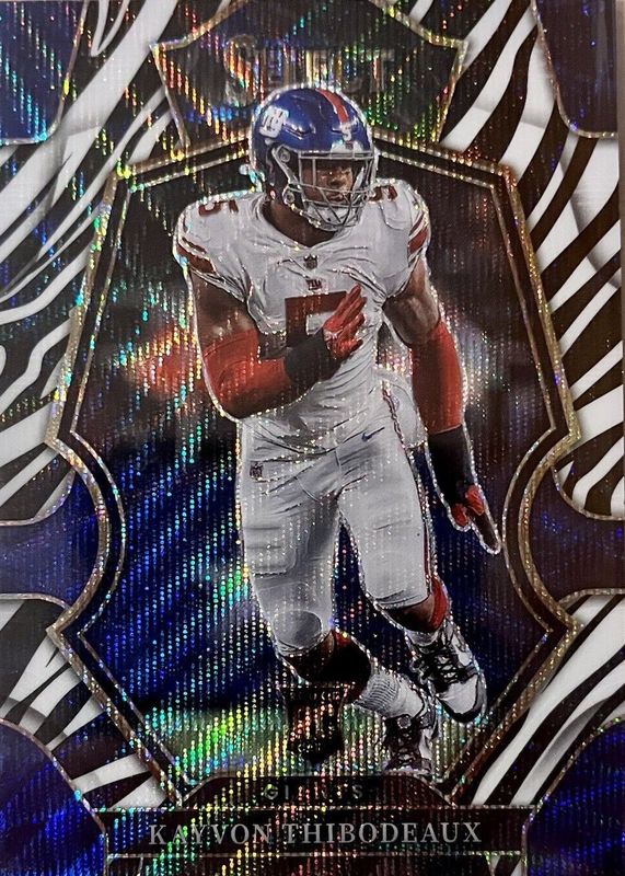 Kayvon Thibodeaux's Football cards are available in at least 28 sets. Kayvon Thibodeaux's biggest 7-day price movers are 2022 Select #175 Premier Level Zebra /(SSP), 2022 Optic #245 Rated Rookie Autographs - Black Pandora /25, and 2025 National Treasures #3 2024 Panini Spectra Football Spectral Signatures - Psychedelic.