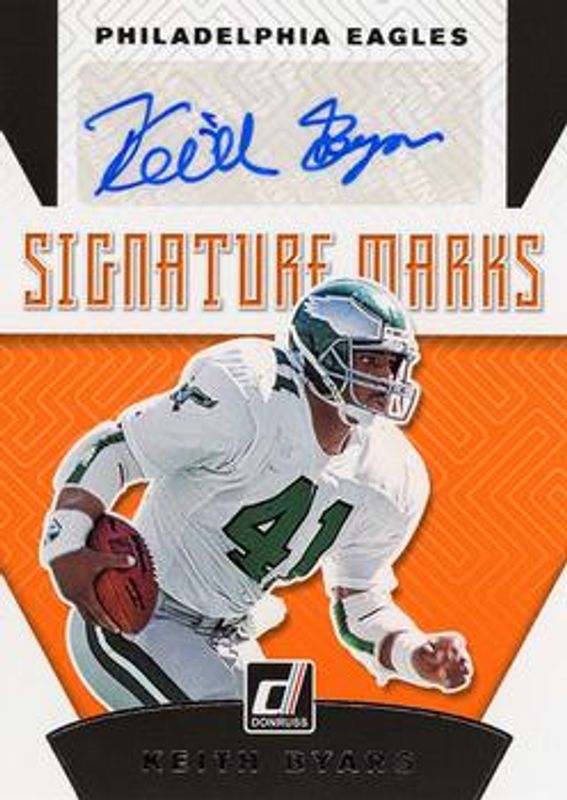Keith Byars' Football cards are available in at least 39 sets. Keith Byars' biggest 7-day price movers are 2019 Donruss #SM-8 Signatures Marks, 2019 Donruss #SM-8 Signatures Marks - Green /25, and 2019 Donruss #SM-8 Signatures Marks - Blue /50.