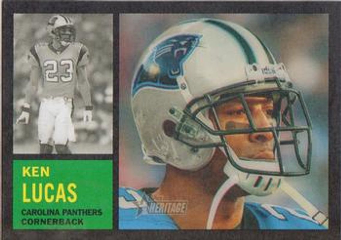 Ken Lucas' Football cards are available in at least 3 sets. Ken Lucas' biggest 7-day price movers are 2005 Topps Heritage #225 Base, 2003 Topps Total #430 Silver, and 2003 Topps Total #430 Base.