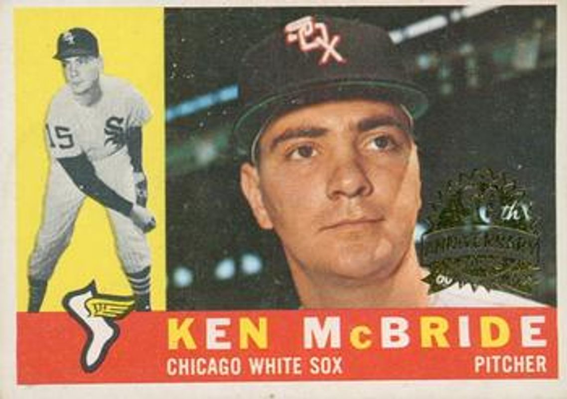 Ken McBride's Baseball cards are available in at least 13 sets. Ken McBride's biggest 7-day price movers are 2009 Topps Heritage #276 50th Anniversary Buybacks, 2010 Topps Heritage #209 50th Anniversary Buybacks, and 2011 Topps Heritage #268 50th Anniversary Buybacks.