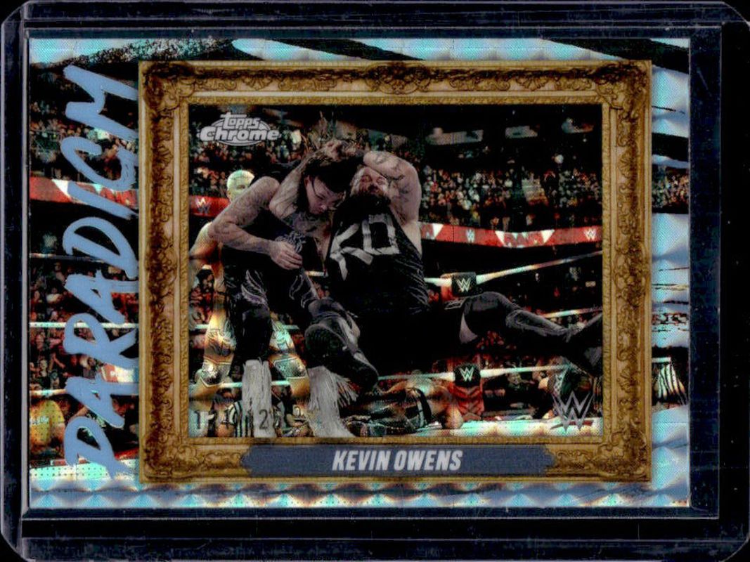 Kevin Owens' Wrestling cards are available in at least 67 sets. Kevin Owens' biggest 7-day price movers are 2025 Topps Chrome WWE #PAR-KOS Paradigm - Aqua Geometric Refractor /125, 2025 Topps Chrome WWE #91 Aqua Shimmer Refractor /199, and 2025 Topps Chrome WWE #PAR-KOS Paradigm - Green Refractor /99.