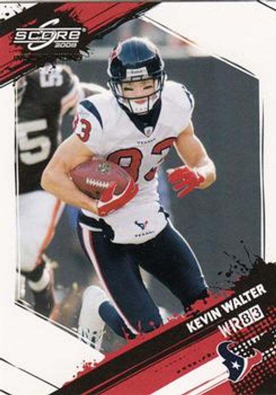 Kevin Walter's Football cards are available in at least 17 sets. Kevin Walter's biggest 7-day price movers are 2009 Score Inscriptions #116 Base /999, 2009 Score Inscriptions #116 Scorecard /50, and 2009 Score Inscriptions #116 Red Zone /30.